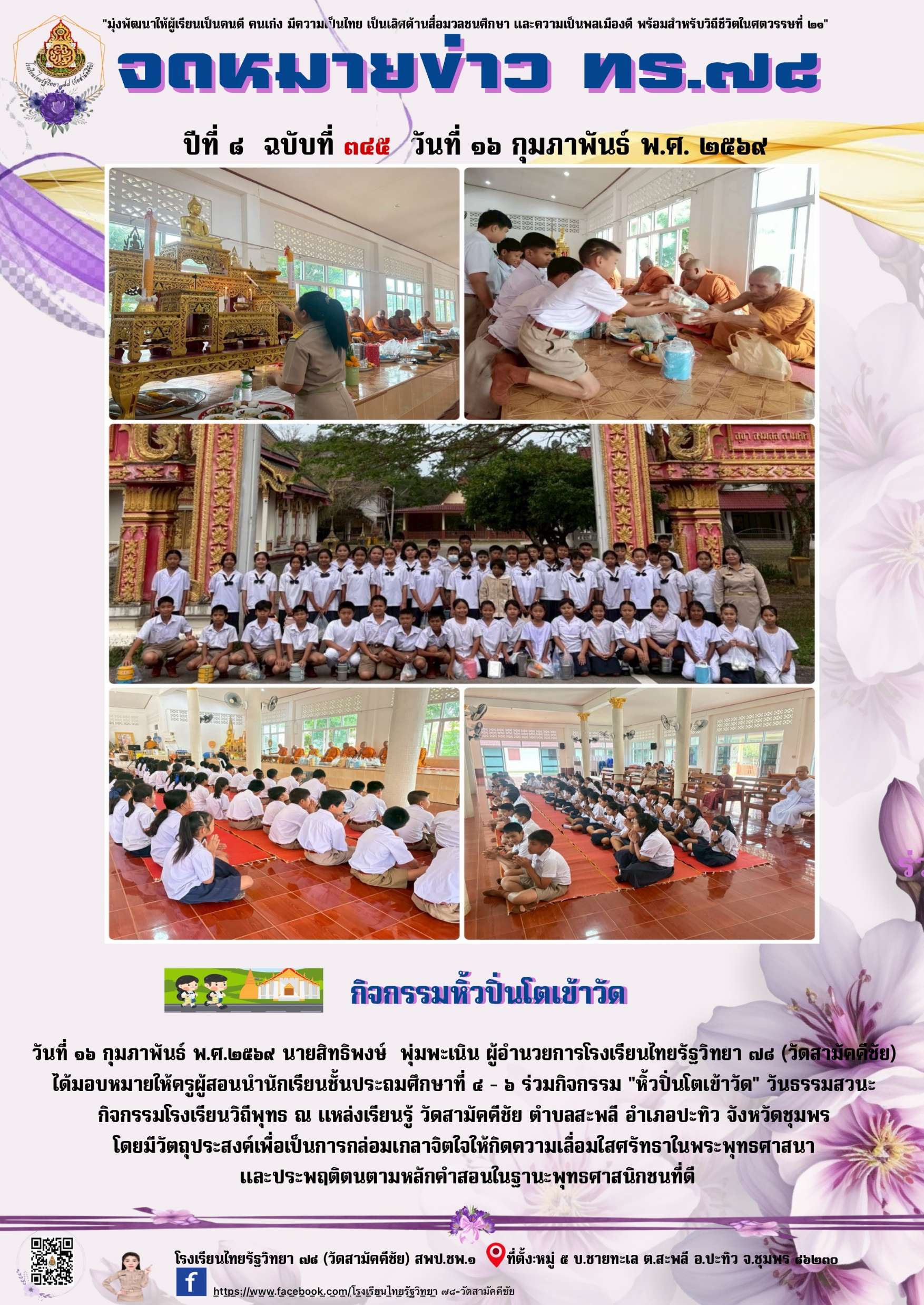 กรณีผู้ปกครองต้องการสอบถามข้อมูลเกี่ยวกับบุตรหลานของท่าน สามารถติดต่อผ่านทางโทรศัพท์ของโรงเรียน คือ 081-084-7519 (688/0) 31 ก.ค. 66