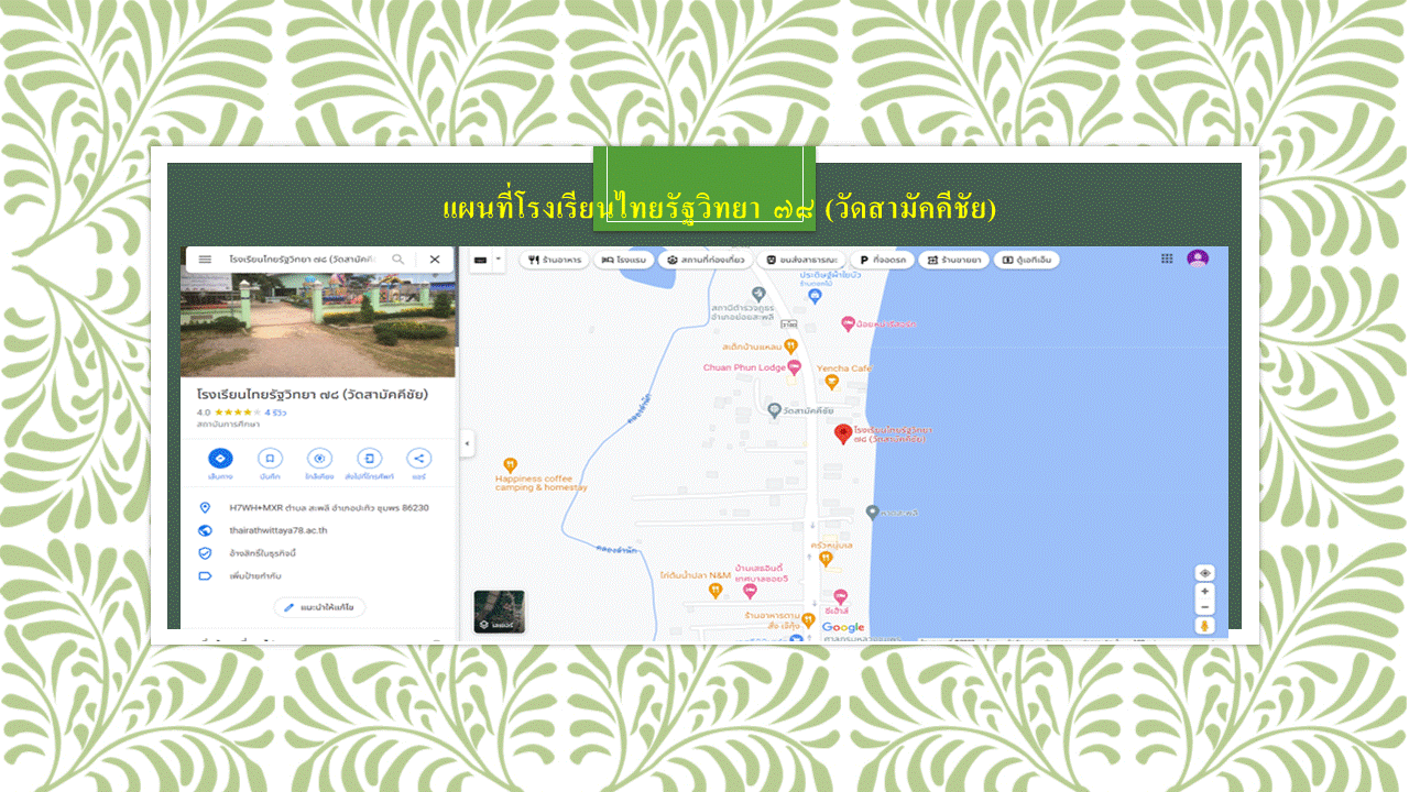http://www.google.com/maps/place/โรงเรียนไทยรัฐวิทยา+๗๘+(วัดสามัคคีชัย)/@10.581268,99.270624,15z/data=!4m5!3m4!1s0x0:0x27e5a188242870fe!8m2!3d10.5967293!4d99.2799014?hl=th-th